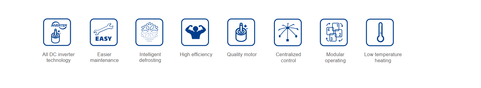 | 3 DC Inverter All DC inverter compressor and DC motor are adopted, so the energy efficiency of unit is higher and the power consumption in standby is lower. |
